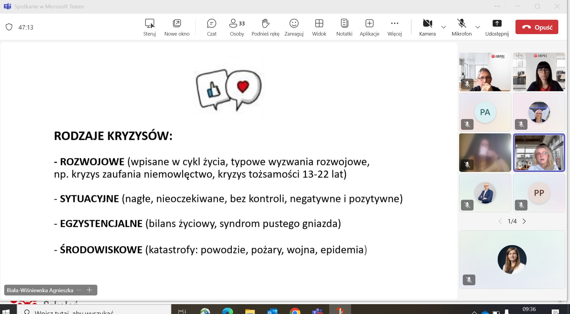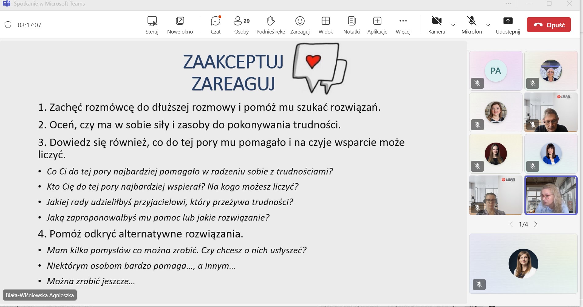 Wydarzenie odbyło się we wskazanych godzinach, online, na platformie Teams. W ramach Dni Uczenia się Dorosłych zapisała się 1 osoba z zewnątrz organizacji, która była obecna na szkoleniu. Pozostali uczestnicy to pracownicy Grupy Impel, dla których szkolenie też było otwarte.