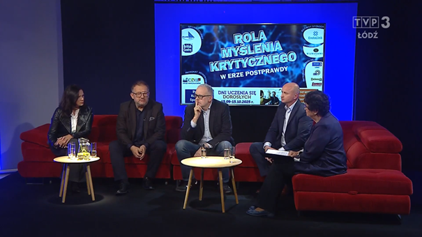 O godzinie 19:10 na antenie TVP3 w Łodzi rozpoczął się panel dyskusyjny "Rola myślenia krytycznego w erze postprawdy"
