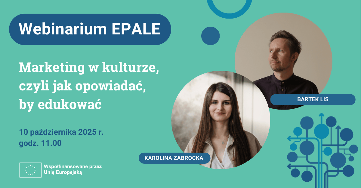 10.10.2025 r. odbyło się Webinarium EPALE: Marketing w kulturze, czyli jak opowiadać, by edukować. zorganizowane przez Fundację Rozwoju Systemu Edukacji i Krajowe Biuro EPALE.