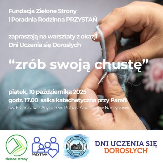 W ramach ogólnopolskiej akcji Dni Uczenia się Dorosłych, Fundacja Zielone Strony oraz Poradnia Rodzinna „Przystań” zorganizowały wyjątkowe spotkanie dziewiarskie pod hasłem „Zrób sobie chustę”.