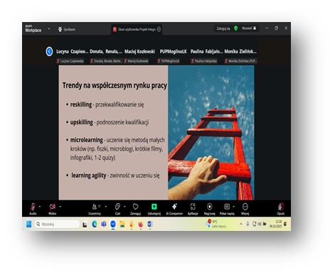 Spotkanie poprowadziła Agnieszka Skowrońska z Centrum Poradnictwa Zawodowego Oddział w Bydgoszczy w Wojewódzkim Urzędzie Pracy w Toruniu - doradczyni zawodowa, pedagożka i wykładowczyni z bogatym doświadczeniem w pracy z różnymi grupami – od nauczycielek i nauczycieli po osoby poszukujące nowych ścieżek zawodowych. Specjalistka w zakresie przedsiębiorczości i motywowania do działania. Od lat wspiera ludzi w odkrywaniu ich potencjału i budowaniu satysfakcjonującej kariery. Realizowała liczne projekty doradcze, łącząc praktyczną wiedzę z indywidualnym podejściem. Prywatnie miłośniczka dobrej kuchni i domowych wypieków, które, podobnie jak jej praca, wymagają pasji, cierpliwości i odrobiny kreatywności.