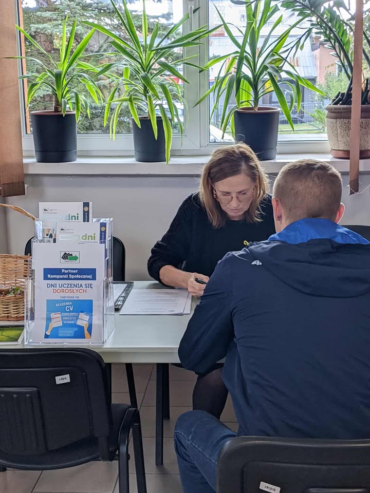 W dniu 07.10.2025 r. w godzinach 8.00 – 11.30 doradcy zawodowi z PUP Biłgoraj wraz z doradcą zawodowym z Centrum Poradnictwa Zawodowego z Lublina służyły merytorycznym wsparciem i praktyczną pomocą podczas praktycznej sesji pn. Akademia CV w Canvie – praktyczne sesje dla dorosłych.